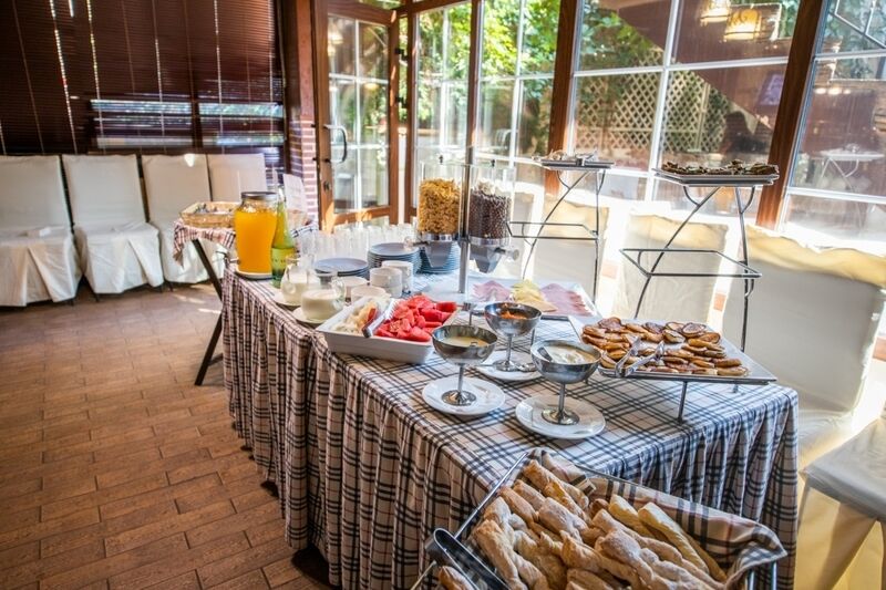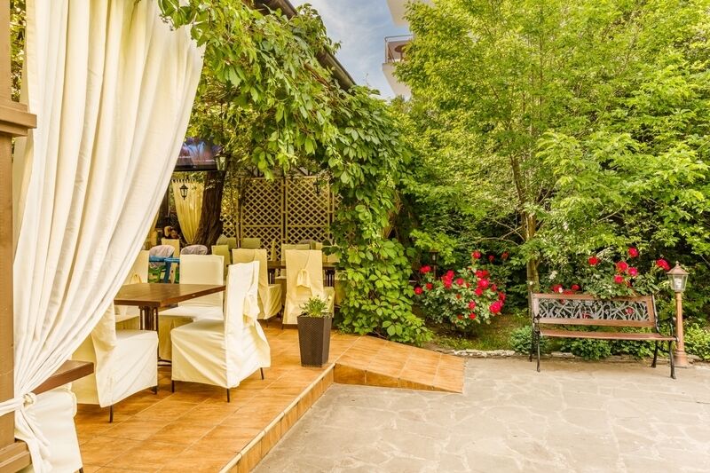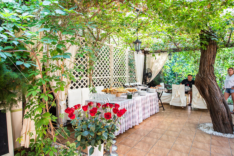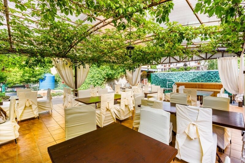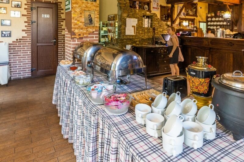 Своя столовая с возможностью 3-разового питания (в помещении) и летнее кафе (на территории). Преимущественно итальянская и русская кухня.