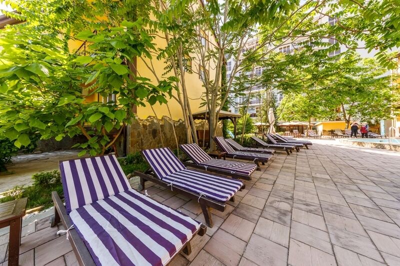 На территории отеля работает кафе, есть открытый бассейн с детским отделением и зоной отдыха рядом. В 5 минутах ходьбы — песчаный оборудованный пляж. На побережье установлены раздевалки, шезлонги, навесы от солнца, много водных развлечений.