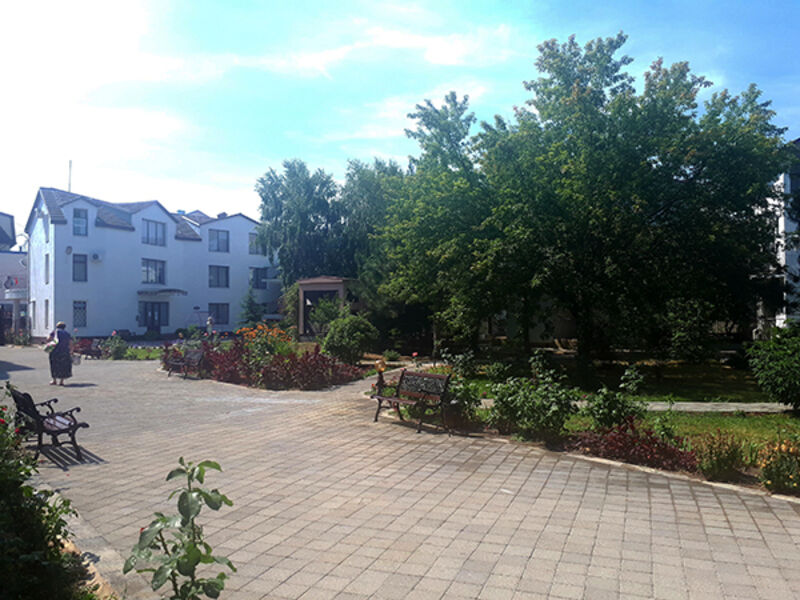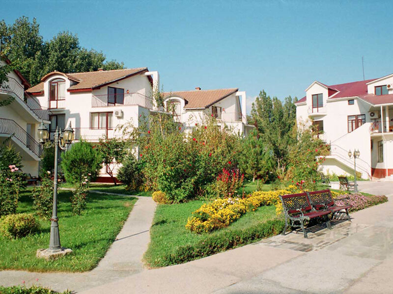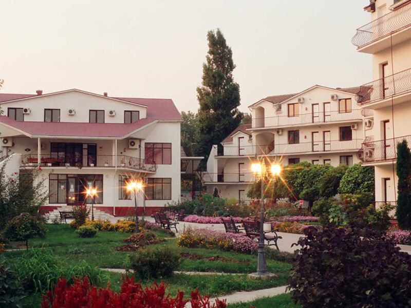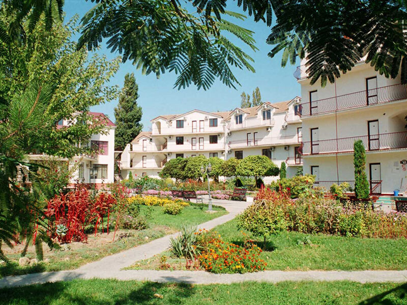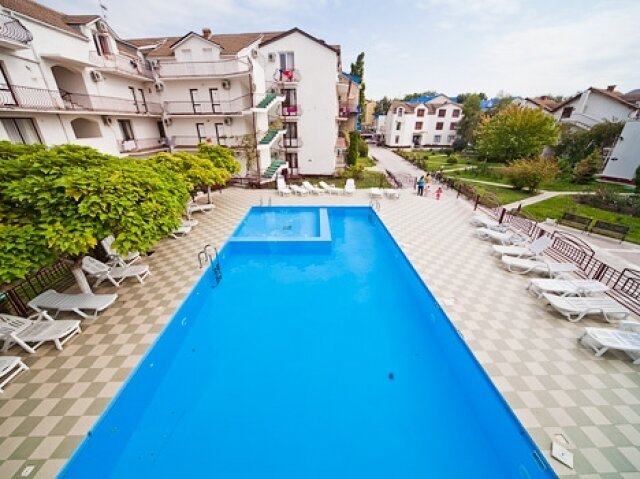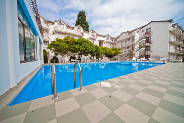 Территория гостиничного комплекса закрыта для посторонних. Элегантные трех- и четырехэтажные корпуса возвышаются среди зелени, цветов, ухоженных клумб. Под открытым небом находится открытый бассейн с детским отделением – наслаждаться купанием можно всей семьей.