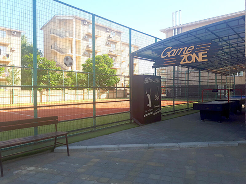 К инфраструктуре отеля относятся детский и взрослый бассейн под открытым небом, спортивные площадки, медпункт, охраняемая автостоянка, магазин сувениров, кинозал и конференц-зал. На территории пансионата доступен Wi-Fi . Детвора может играть на открытой безопасной площадке или находится в игровой комнате под присмотром воспитателя. Днем ребят развлекает анимационная команда: мальчишки и девчонки участвуют в играх и представлениях.