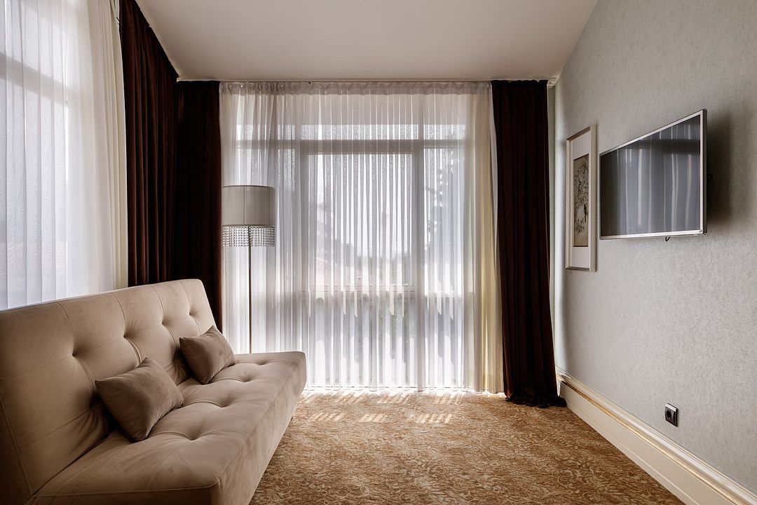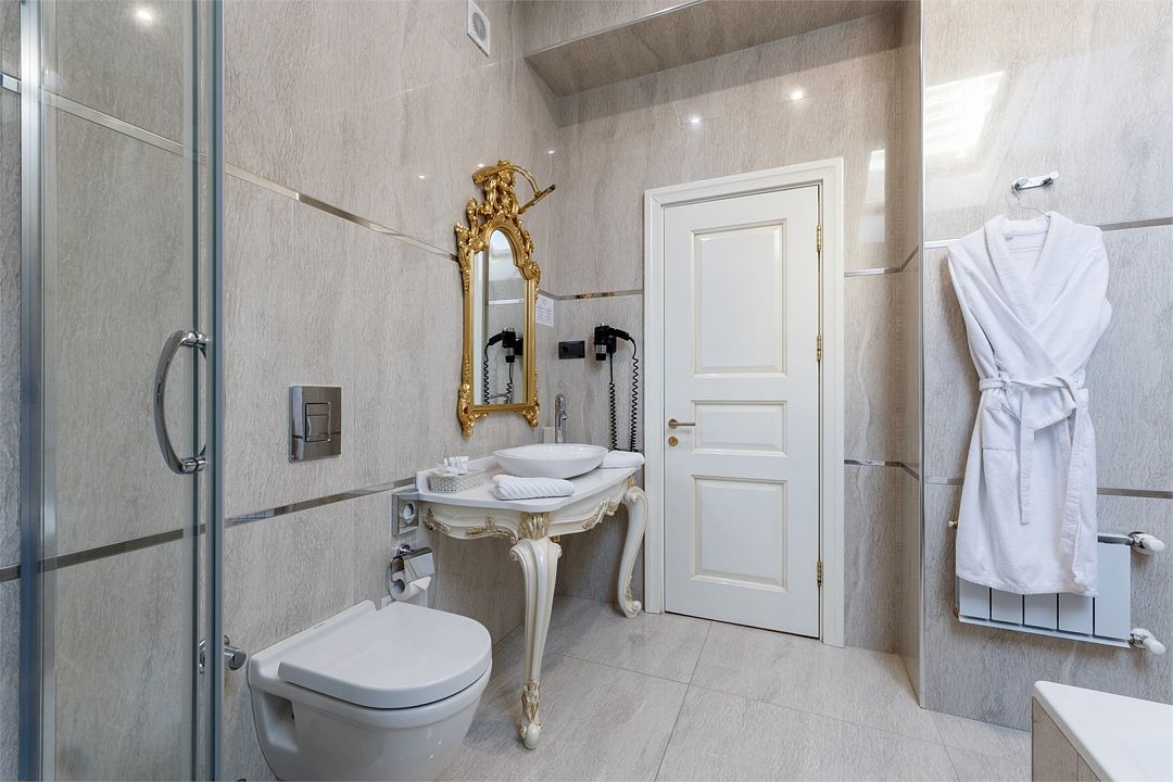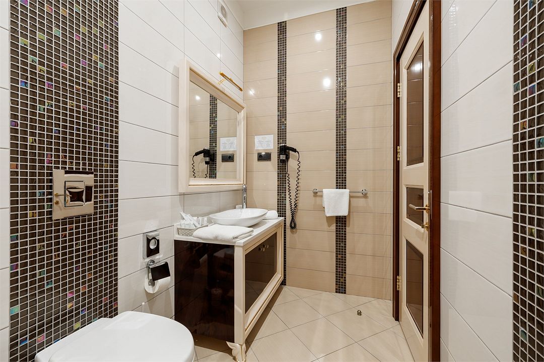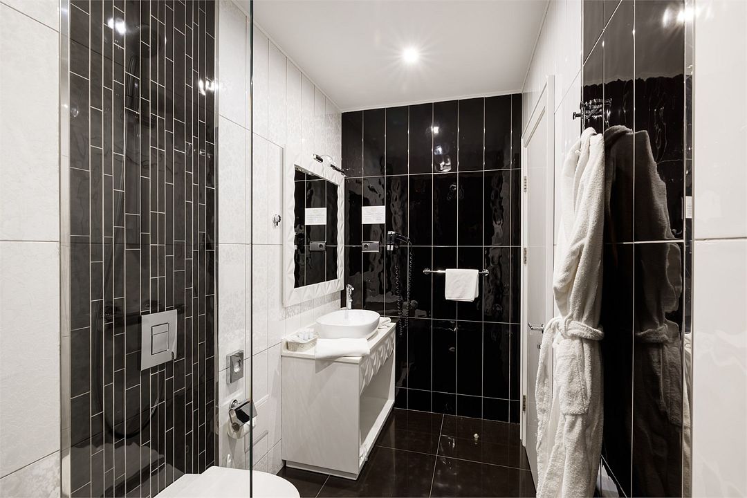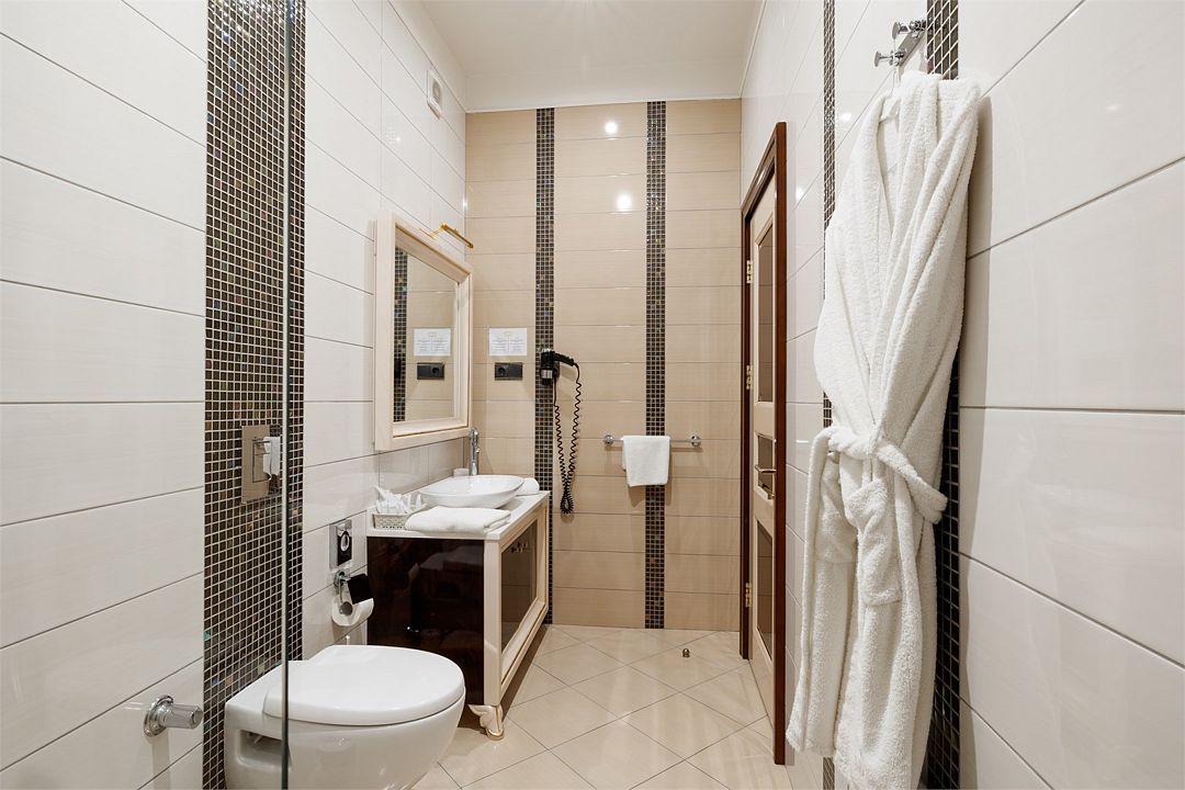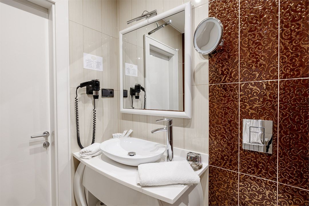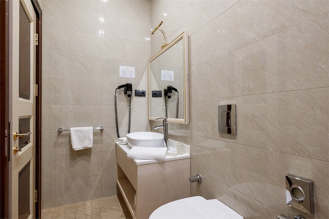 Однокомнатный просторный номер площадью 20 кв.м., окна на тихий двор: двуспальная кровать, шкаф/гардероб, кресло/стул, стол, сейф, набор посуды, мини - холодильник, кондиционер, телефонная связь, телевизор с плоским экраном, бесплатный Wi-Fi. Собственная ванная комната: душ, фен, полотенца, косметические принадлежности, тапочки, халат.Услуги и удобства