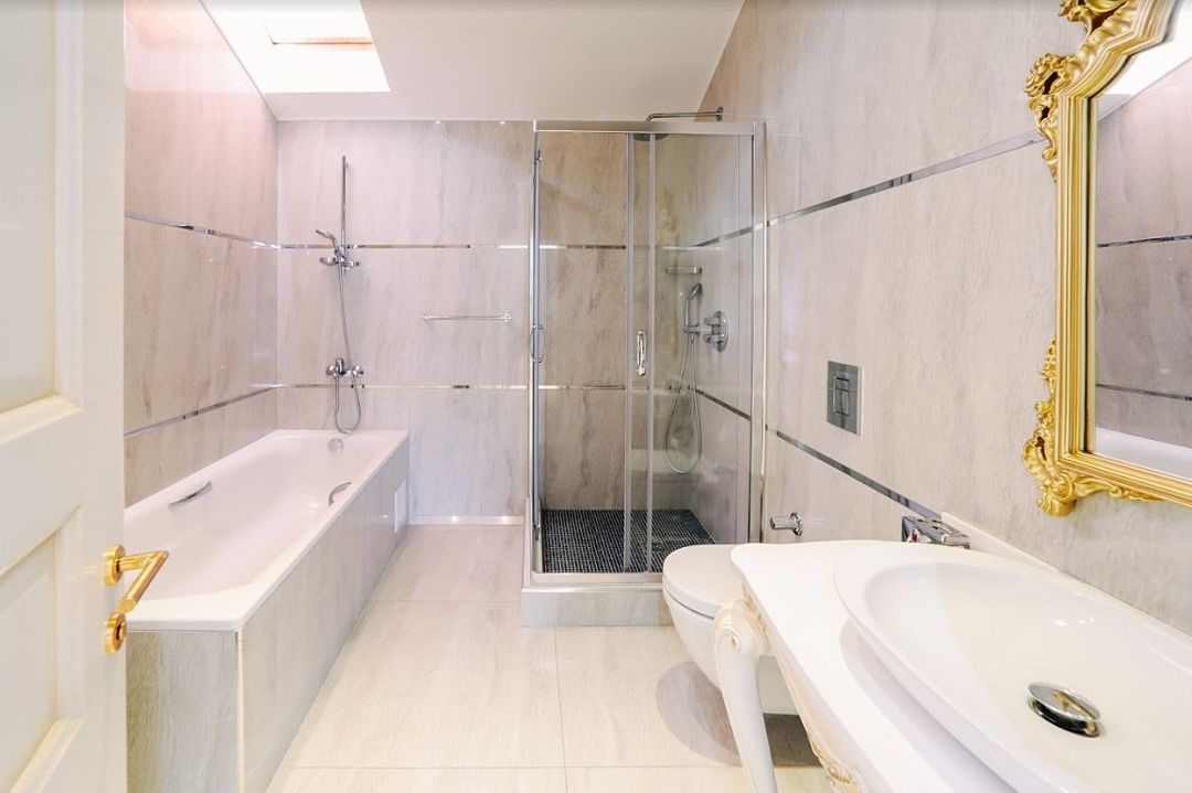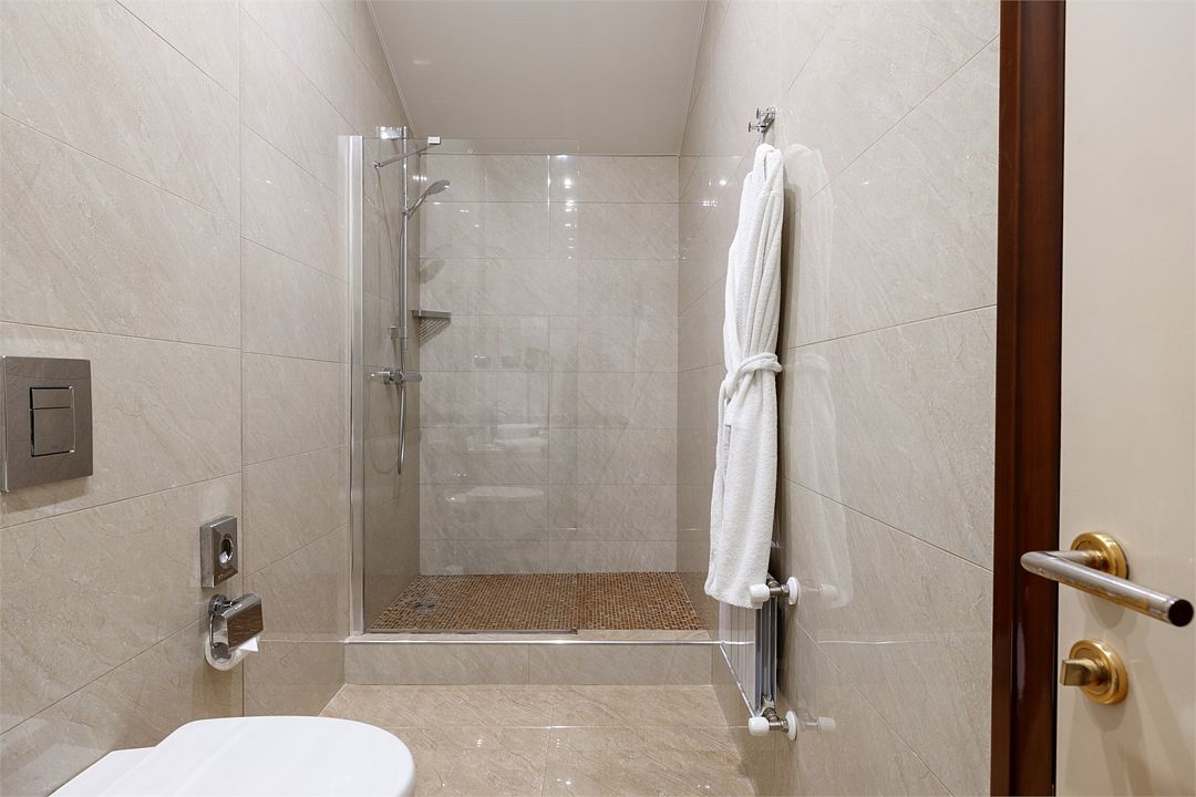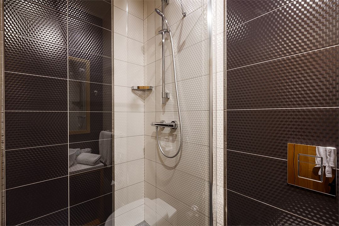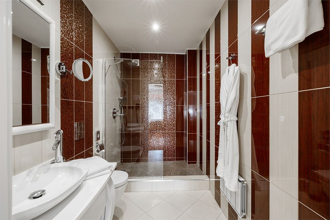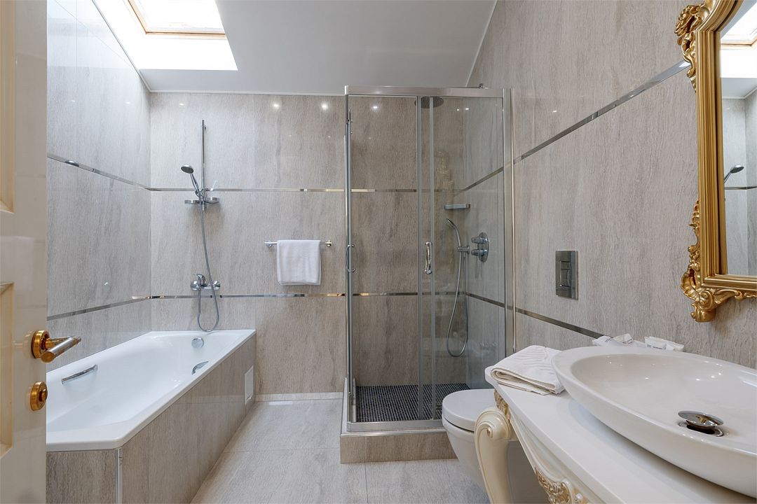 Wi-Fi, кондиционер, фен, электронные замки, душевая кабина, халаты, банные полотенца, тапочки, кровать «King size», тумбы, гардеробная, вешалки, багажная тумба, ковер, сейф, унитаз, раковина, отопление, душ, стаканы, стул, стол, внутренний телефон, телевизор с плоским экраном, мини-холодильник, гостиничная парфюмерия, мансардные окна, без питомцевВ гостиничном номере