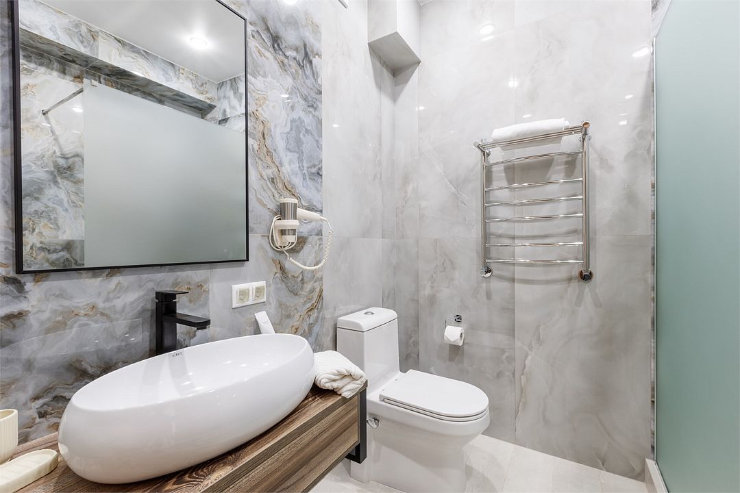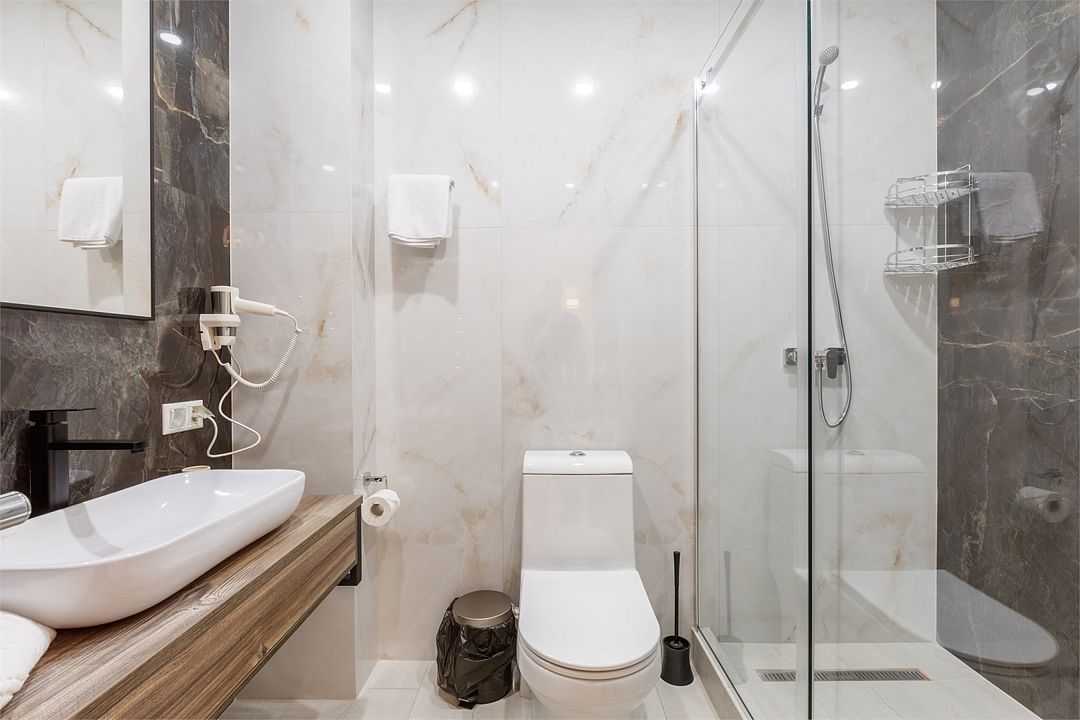 Wi-Fi, кондиционер, светильник, фен, электронные замки, ванная комната, душевая кабина, ванна, халаты, банные полотенца, тапочки, кровать «King size», диван, тумбы, стулья, вешалки, письменный стол, обеденный стол, барная стойка, зеркало, ковер, сейф, чайник, унитаз, гостиная зона, отопление, кресло, стаканы, стол, внутренний телефон, телевизор с плоским экраном, мини-холодильник, гостиничная парфюмерия, без питомцевВ гостиничном номере