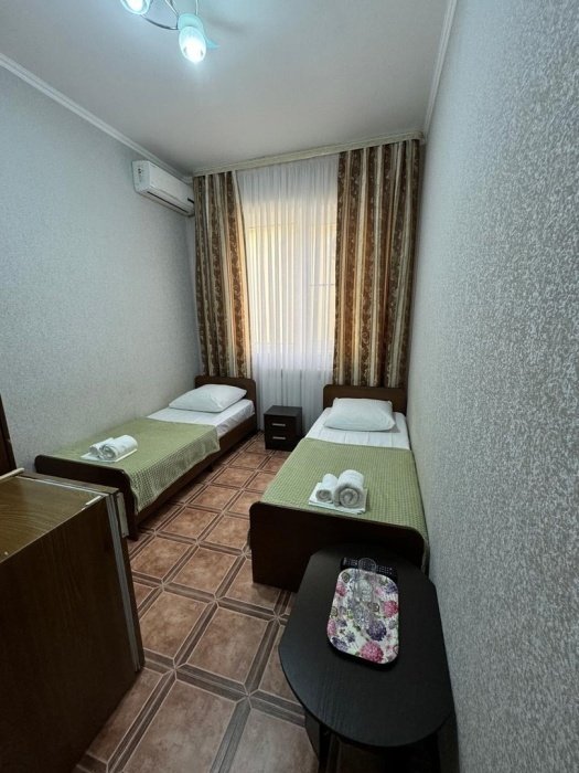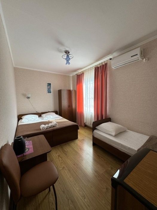 4-этажное здание предлагает комфортабельные номера, рассчитанные на 2, 3 и 4 гостя. В каждом номере есть кондиционер, ванная комната, телевизор и Wi-Fi. На территории гостевого дома имеется общая кухня с кухонными принадлежностями, микроволновой печью и посудой. Для автовладельцев предусмотрена парковка. До мелко-галечного пляжа можно дойти прогулочным шагом за 2–3 минуты по ровной дороге.