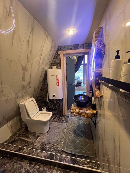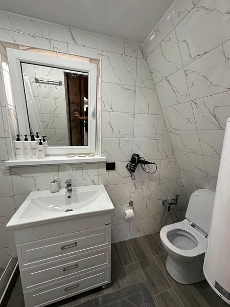 Ванная комната, тапочки, душ, фен, гигиенические средства, полотенца, стулья, стол, теплый пол, водонагреватель. Стабильный wi-fi, подвесное кресло, терраса с мангальной зоной.