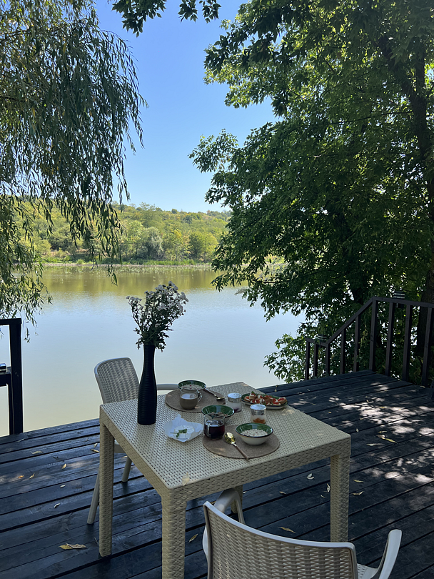 - у каждого домика своя терраса с выходом на озеро, к Сибирскому чану, мангальной и костровой зоне, спуск к воде для рыбалки;