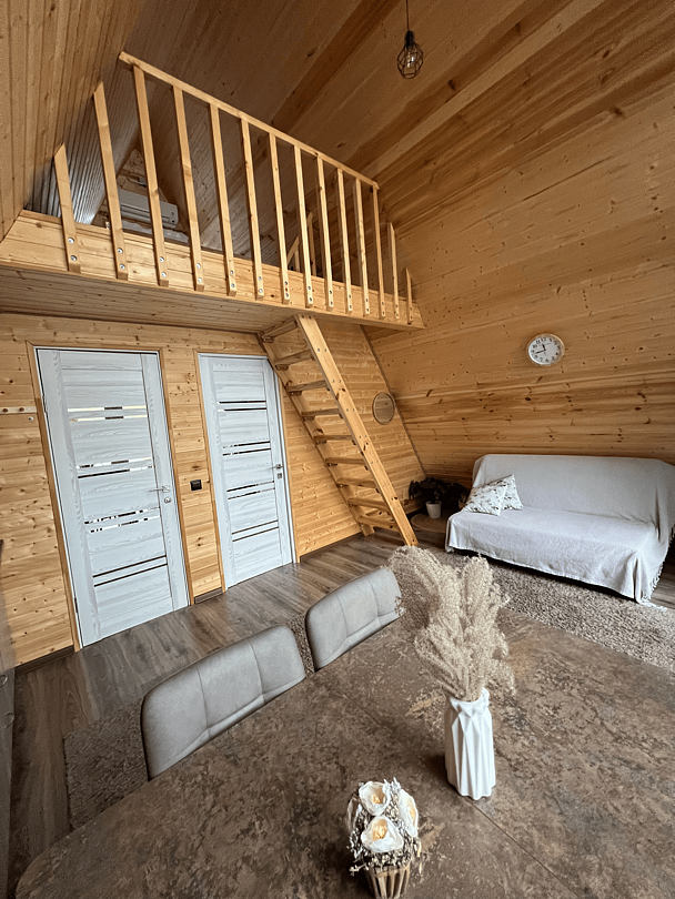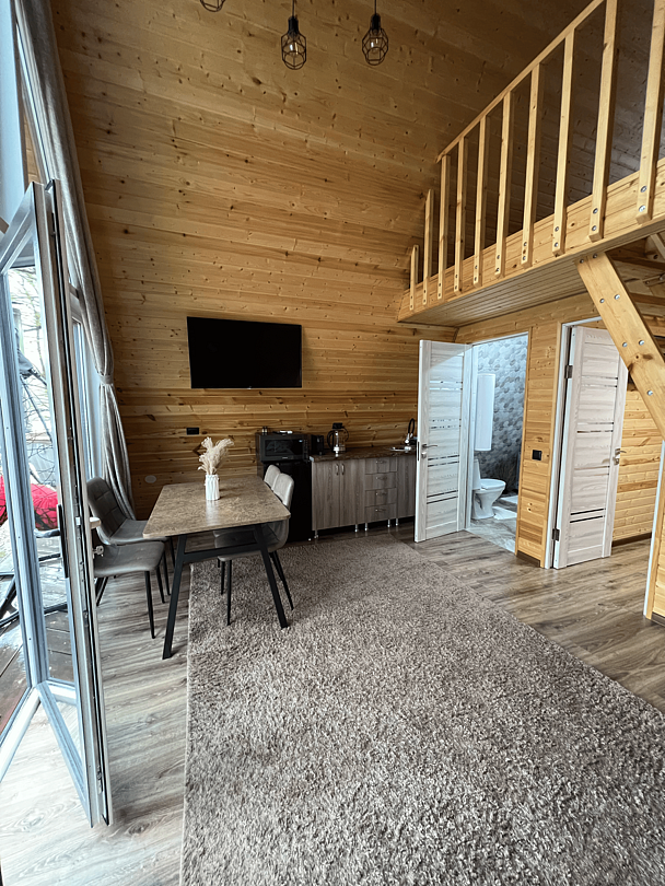 Стильный домик для двоих! Панорамный вид с собственной террасой и сибирским чаном.