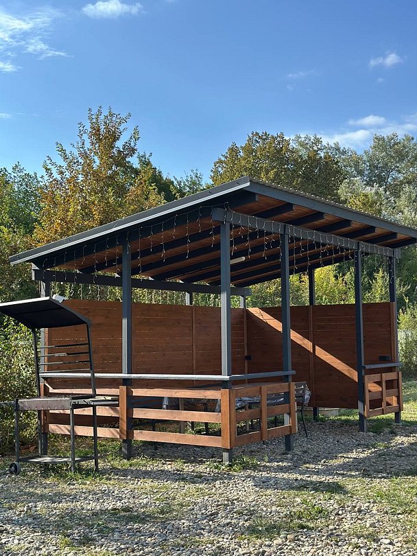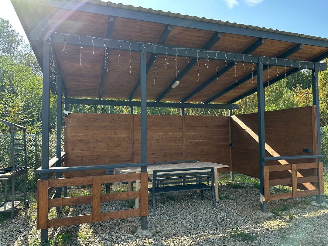 Зона с мангалом — идеальное место для кулинарных экспериментов на свежем воздухе. Гости смогут наслаждаться ароматами жареных блюд, проводить время у огня с близкими и превратить вечер на природе в уютную и душевную трапезу.