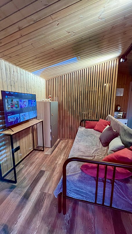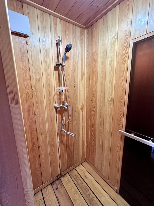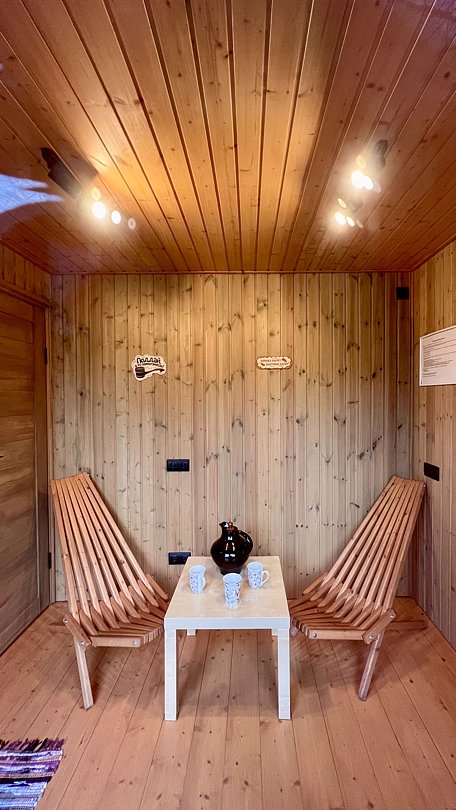 Дровяная баня оснащена всем необходимым для приятного времяпровождения и рассчитана на группу до четырех человек. Здесь можно по-настоящему насладиться парением в уютной и теплой атмосфере, которая особенно ценится гостями.
