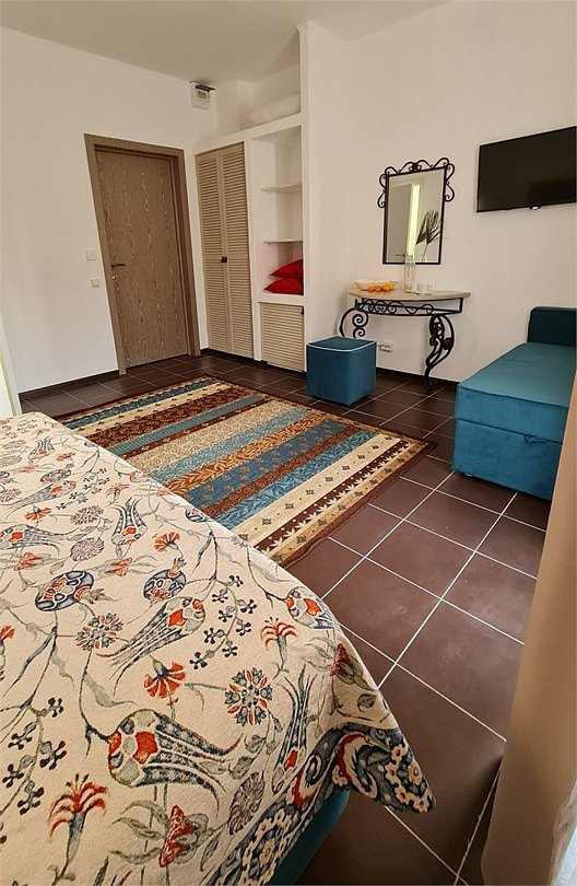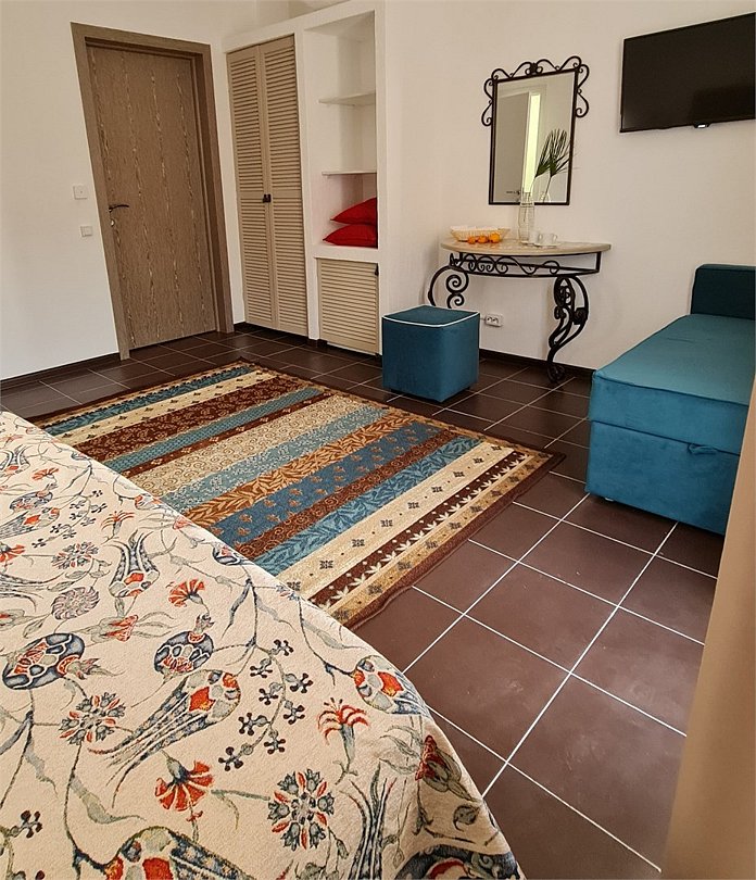 Кровать двуспальная, диван кровать, тумбочки прикроватные, холодильник, кондиционер, телевизор, санузел (душ+туалет)