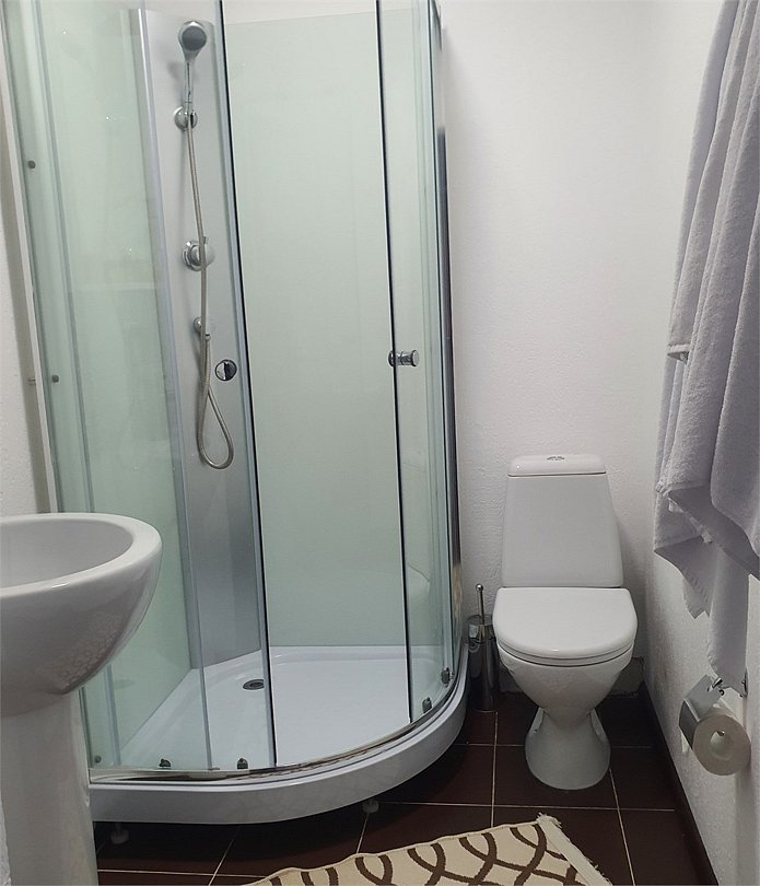 Номер очень чистый и просторный. С кондиционером, тв, чайником и чашками, душевой кабиной и просторными кроватями.