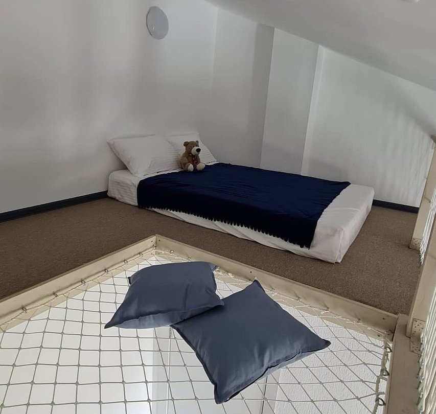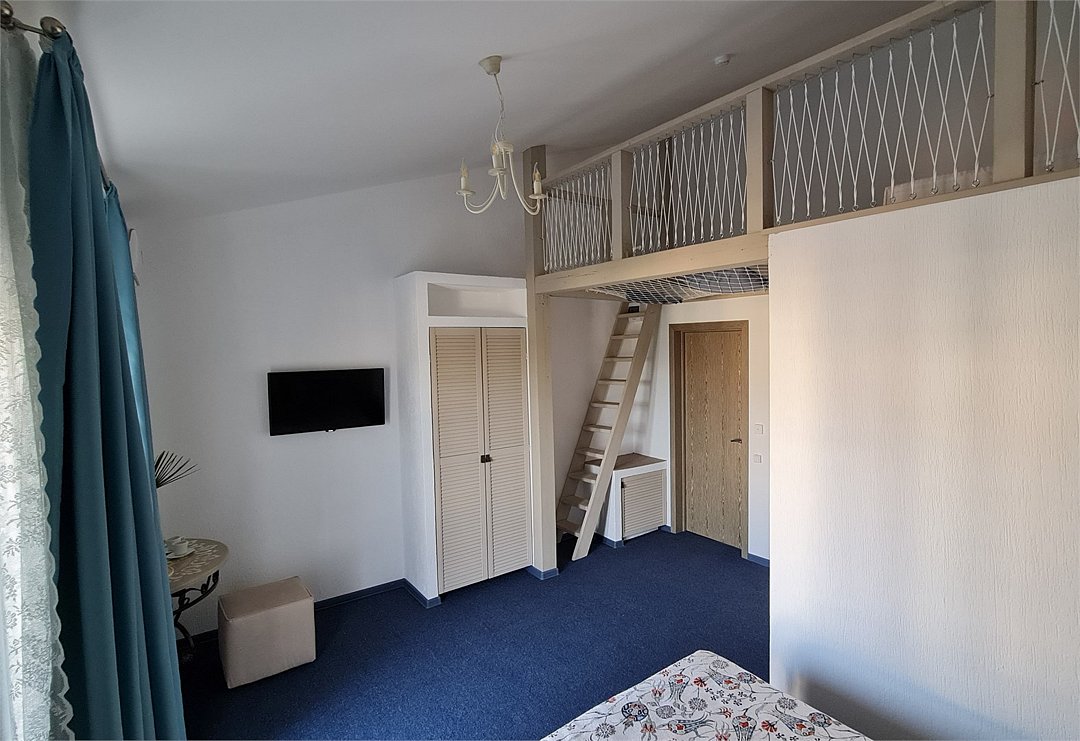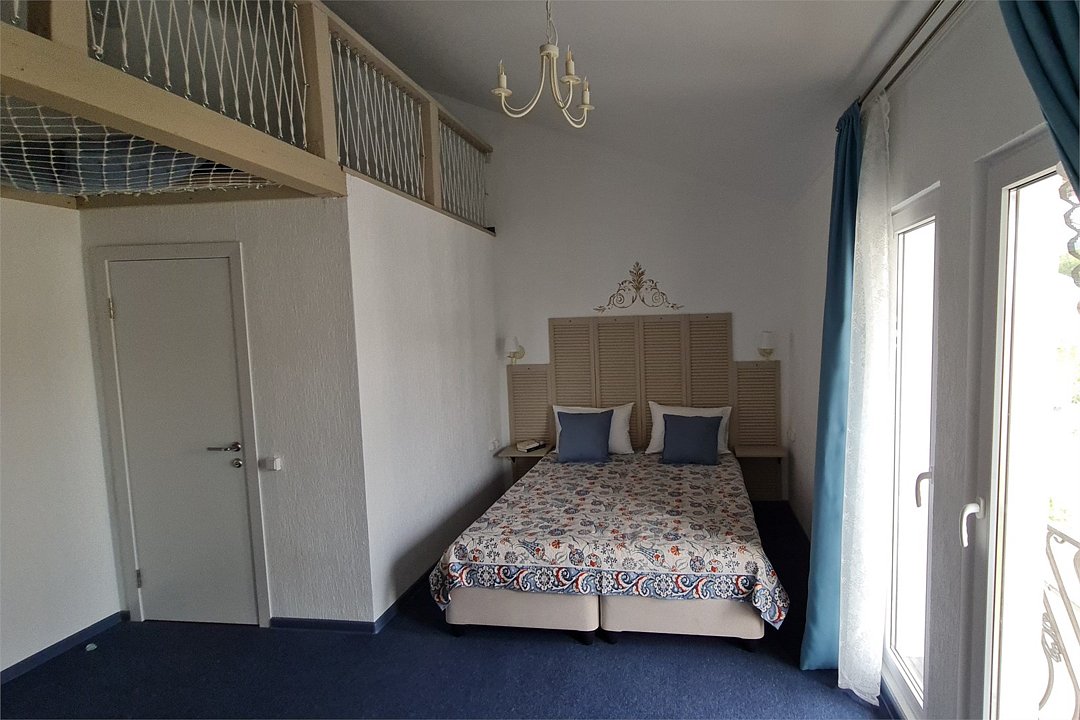 Просторный двухэтажный номер для семейного проживания родителей с детьми включает в себя большую кровать (king size), двуспальную кровать на 2 этаже, телевизор, холодильник , сейф, кондиционер , игровая зона для детей.Услуги и удобства