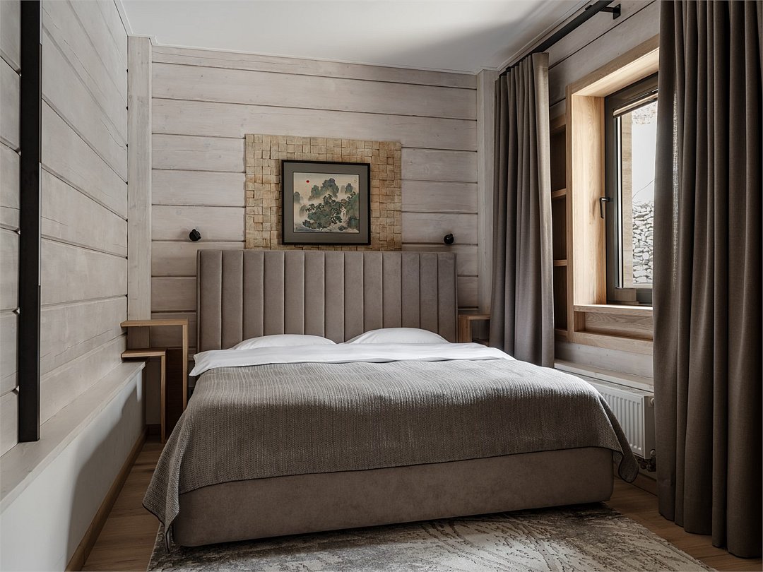 Насладитесь волшебными видами гор в стильном двухэтажном Шале с террасой, подогреваемым бассейном и баней. 4 спальни с индивидуальными ванными комнатами. В гостиной высокие потолки и панорамные окна. С террасы открывается великолепный вид на горы. В вашем распоряжении кухня, полностью оборудованная премиальной техникой и посудой BORK. В двухэтажном шале комфортно разместится до 8 человек. На первом этаже расположена просторная гостиная с кухней и камином, 3 спальни с собственными ванными комнатами. На втором этаже – спальня с ванной. На территории шале находится подогреваемый бассейн, всесезонная кухня на открытом воздухе с грилем и зоной отдыха. Баня на дровах. Сервис в шале: - администратор/ресепшн, - ежедневная уборка, трансфер (по запросу).Шале