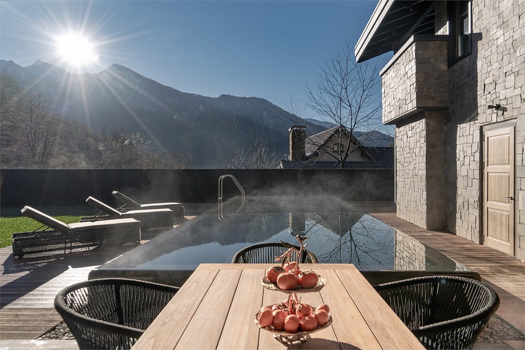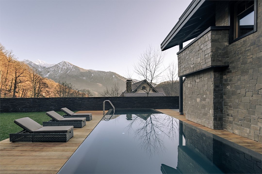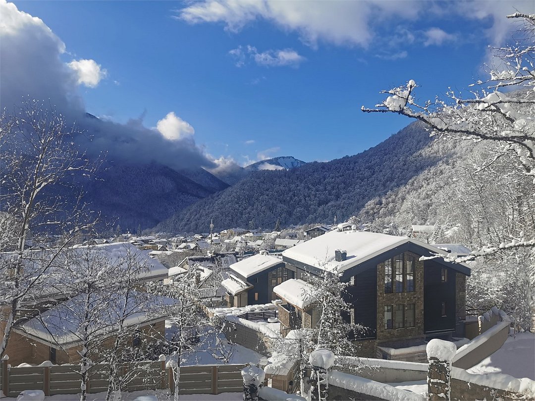 Изысканное Шале с подогреваемым бассейном, всесезонной кухней с камином на открытом воздухе, площадкой для баскетбола и купелью. Шале включает в себя 2 уютные гостиные, 4 спальни с индивидуальными ванными комнатами и кабинет. Из гостиной и спален с террасой открывается великолепный вид на горы. В вашем распоряжении комфортная кухня, полностью оборудованная премиальной техникой и посудой BORK. В трехэтажном шале разместится до 8 человек. На нижнем этаже расположена гостиная, гостевая спальня с собственным санузлом, финская сауна с ванной комнатой, тёплый гараж. На среднем этаже – просторная кухня-гостиная с выходом на террасу, кабинет и ванная комната. На верхнем этаже находятся 3 спальни с ванными комнатами. Сервис в шале: - администратор/ресепшн -ежедневная уборка -трансфер (по запросу) Комплектация шале: -детские кровати и стулья, -премиальная техника BORK, -посуда BORK, -стиральная и сушильная машины, -гладильная система BORK, -халаты, тапочки, туалетные принадлежности, -телевидение, WI-FI, -подогреваемый гараж, - финская сауна, - массажное кресло BORK, - площадка для баскетбола, - гриль BORK, - всесезонный бассейн. Расстояние от аэропорта Адлера до шале - 41 км. Расстояние до ближайшей горнолыжной трассы - "Красная Поляна" -12 минут на автомобиле ( 5,2 км).Услуги и удобства
