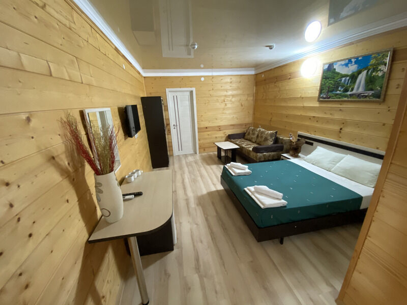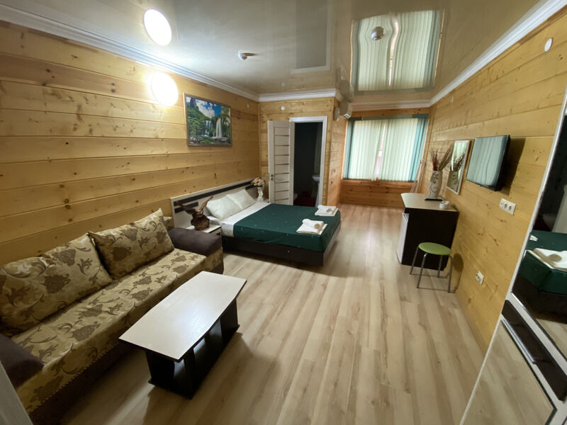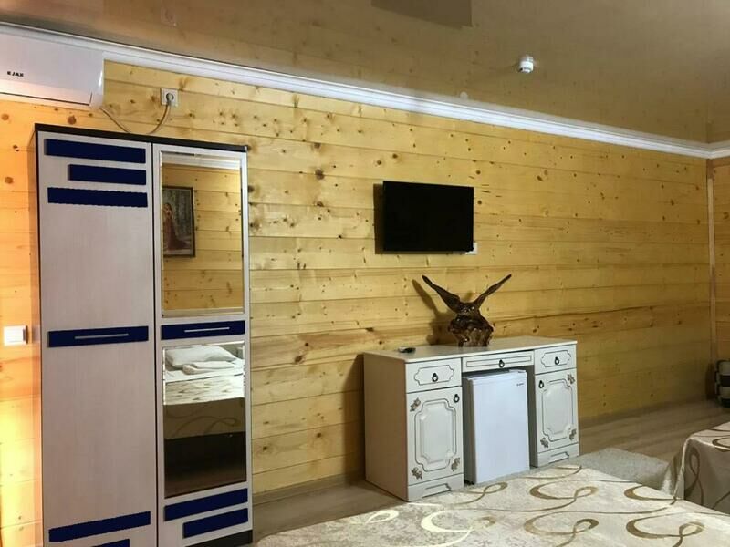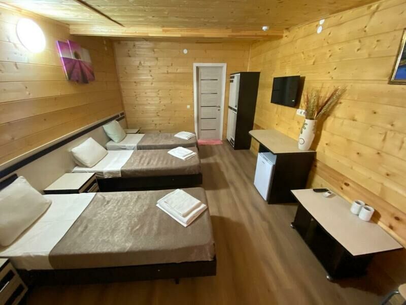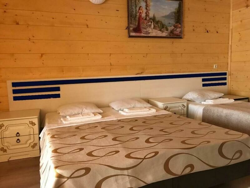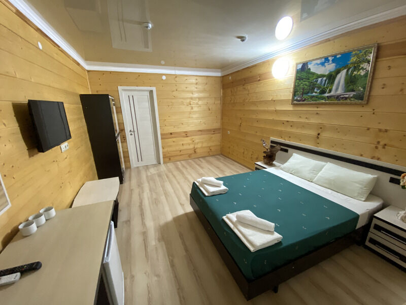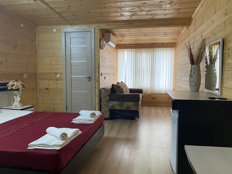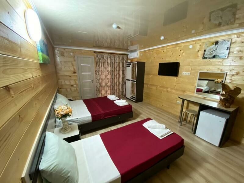 Трехэтажный корпус отеля занимает небольшую охраняемую территорию на первой береговой линии. Жилой фонд, способный единовременно принять более 130 человек, предлагает гостям уютные современные номера. В номерах есть все, что нужно для комфортного пребывания: собственный санузел с душем, сплит-система, плазменный телевизор, фен, холодильник.