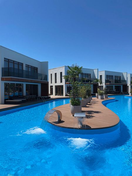 - термальный 3-х этажный комплекс Theia SPA с подогреваемым крытым бассейном и с выплывной чашей; подогреваемый бассейн с зоной джакузи и видом на море, 6 видов парных, 2 сенсорные комнаты, зимний пляж;