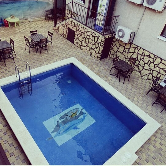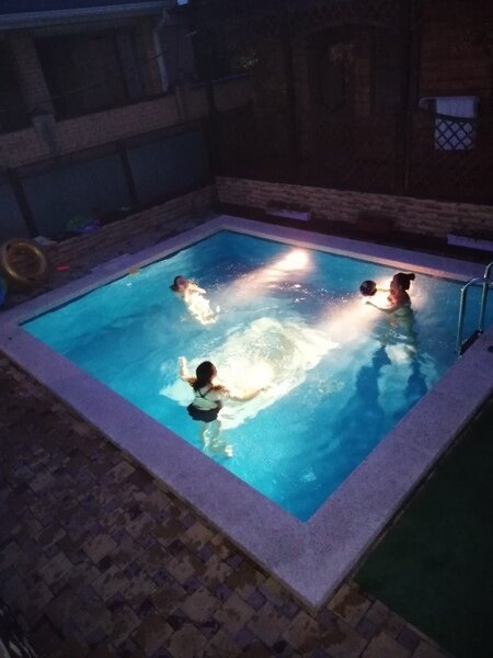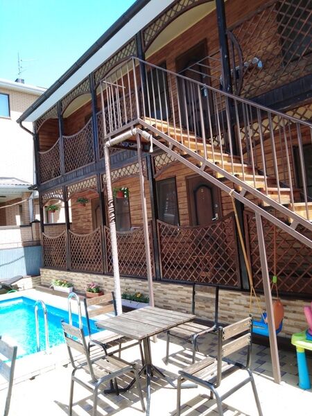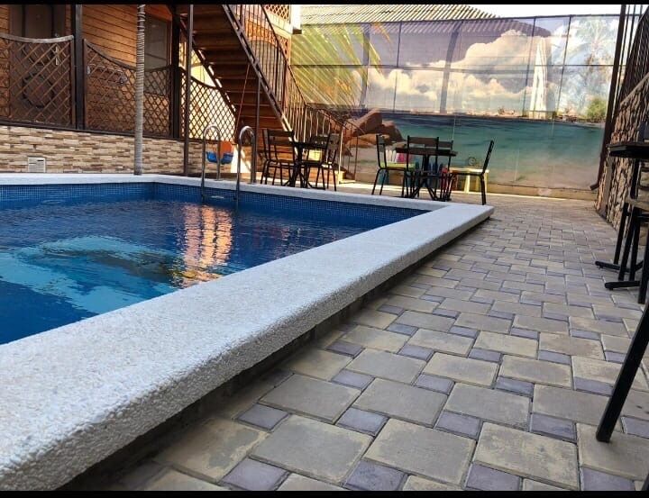 Тип бассейна: открытый бассейнВода в бассейне: подогреваемый бассейнРядом с бассейном: шезлонгиБассейн с подсветкой на территории гостевого дома.