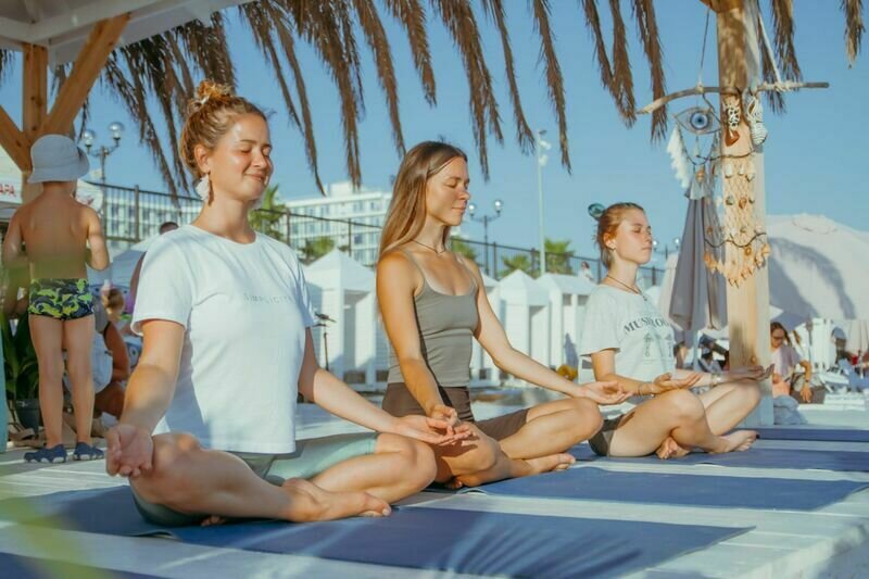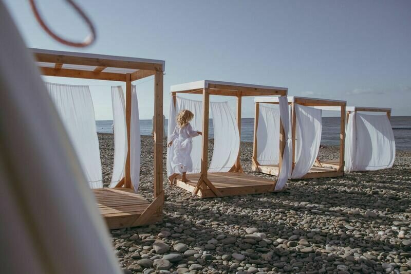 К услугам гостей на пляже: спортплощадка, детская игровая комната, бары, сапборды, экскурсии, курортные товары, бьюти-услуги (плетение косичек/временное тату), SPA-услуги, пуфы в вечернее время, качели, мороженое.