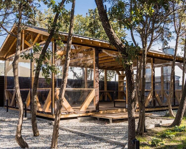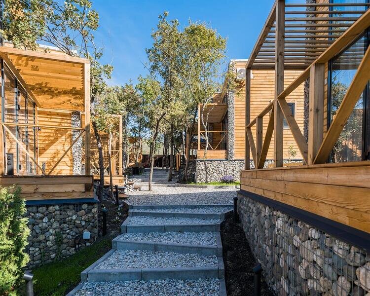 Разместиться гости могут в домиках с приятным спальным местом, где имеется собственная душевая комната и чистое постельное белье.