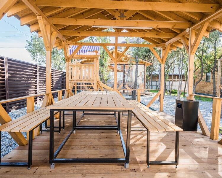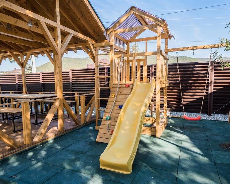 На территории загородного клуба «Гарден ОЗ» располагаются шесть двухуровневых домиков, зона барбекю, детская площадка, площадка для отдыха.