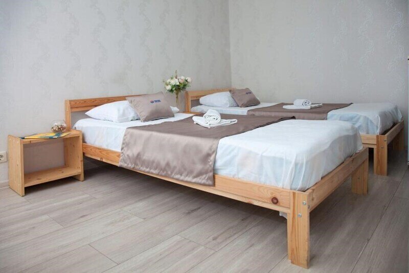 Одна 2-спальная и одна 1-спальная кровать, или три 1-спальные кровати, с/у с душем, кондиционер, ТВ