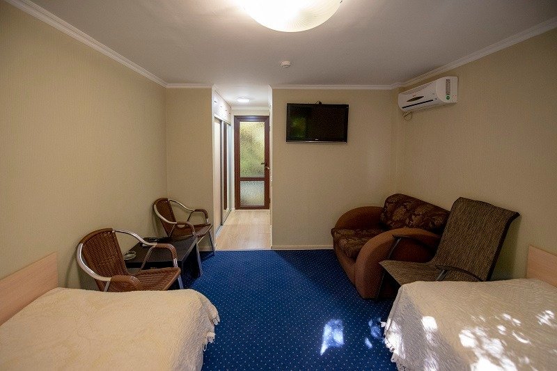 Проживание в комфортабельных однокомнатных 2-х местных номерах со всеми удобствами. В номере имеется: две односпальные кровати, дополнительное место кресло-кровать, тумбочки, шкаф-купе для одежды (с зеркалом), сплит-система, холодильник, телевизор ЖК (спутниковое телевидение), ванная комната.