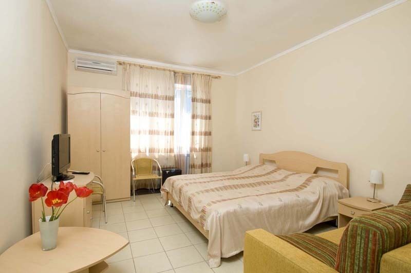 Все номера корпуса «Москва» выдержаны в легком и солнечном южном стиле - красивая светлая мебель, плетеные стулья, нарядные покрывала на кроватях, легкие занавески на больших окнах, симпатичные светильники. Трехразовое питание включено в стоимость номера.