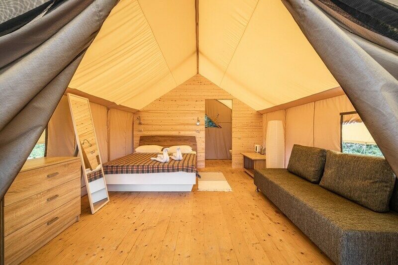 - В глэмпингах возможно размещение детей от 0+, в кемпинге - от 7 лет