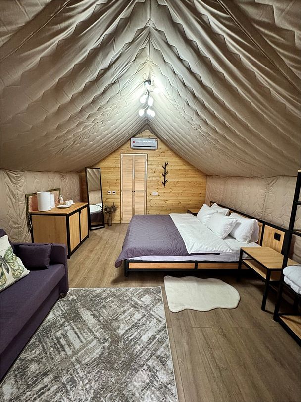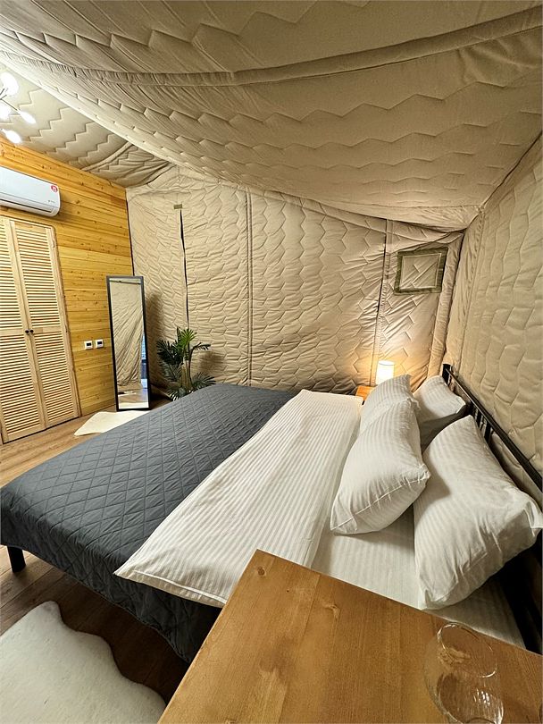 Забудьте о шуме и суете большого города, погрузившись в безмятежность одного из девяти уникальных сафари-тентов с фурако, где природа становится вашим лучшим другом. Или выберите стильный барнхаус с джакузи, чтобы ощутить максимальный комфорт. Вне зависимости от выбора, вас ждут кондиционер, удобные кровати и собственные санузлы – все для безупречного отдыха.