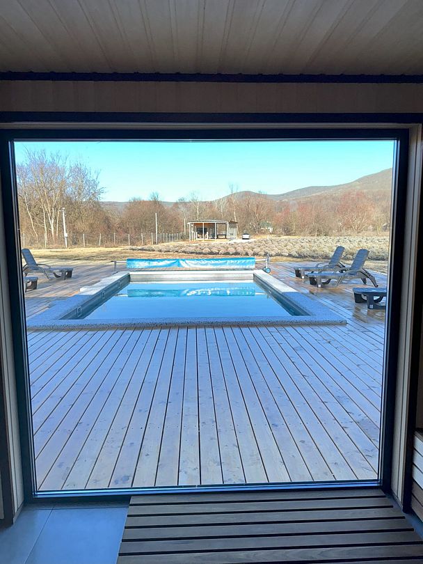 Для вашего отдыха на территории комплекса есть спа-зона с подогреваемым бассейном и баней с панорамным видом, которую вы можете посетить и без проживания.