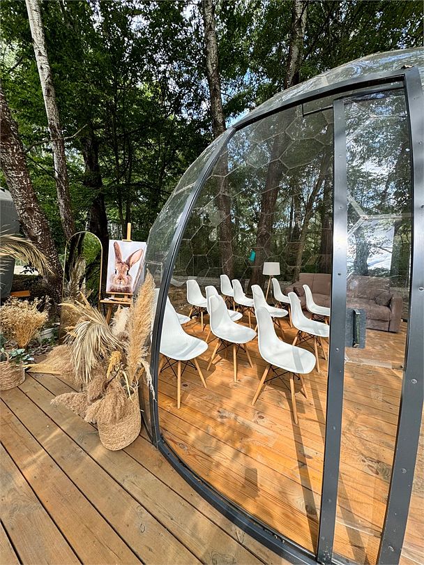 В этой локации вы сможете отметить свой праздник, провести небольшую конференцию или же просто провести время со своей семьей. В куполе атмосферно когда идет дождь или снег, ведь он абсолютно прозрачный.