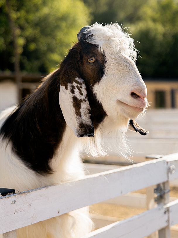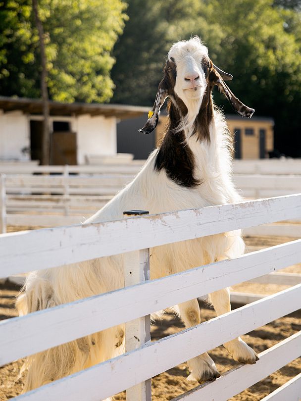Есть красивая фотозона для запечатления ваших лучших моментов на ферме. Помимо кроликов, здесь живут нубийские козочки Фиона и Ника, барашки-дорперы, валийцы-керри-хиллы и камерунские барашки. А также местная звезда — козел Гоша, который обожает делать селфи с гостями.