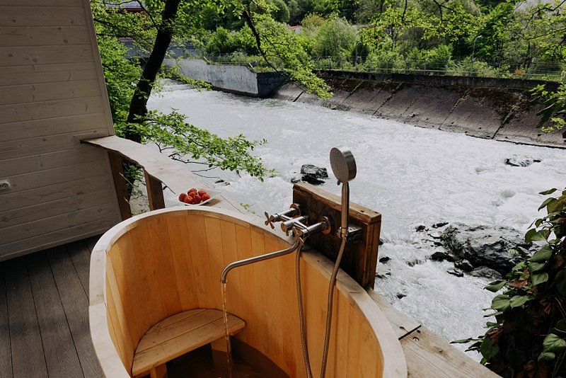 Испытайте совершенно новый уровень комфорта и стиля в глэмпинге «В Потоке», находящемся на берегу реки Мзымта.