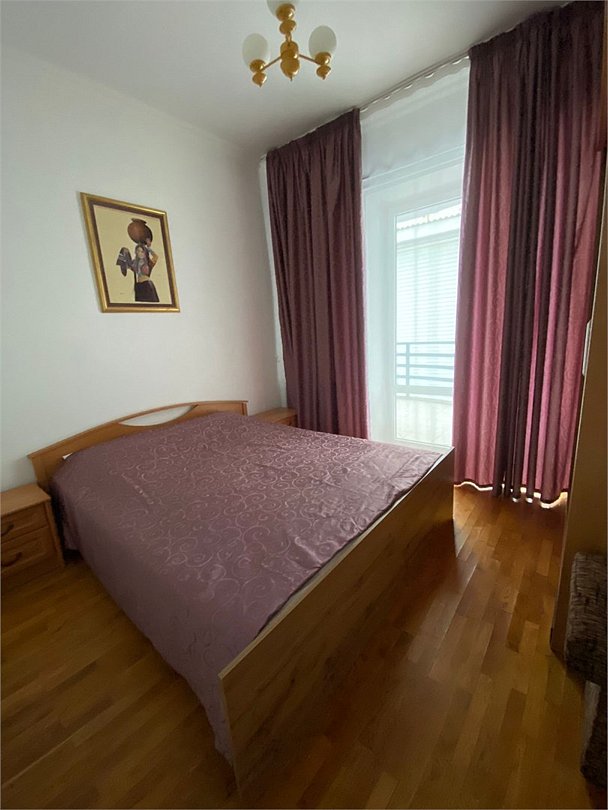 двуспальная кровать и раскладной диван, тумбочки ,шкаф для одежды, телевизор, кухонный гарнитур, газовая плита, микроволновая печь, холодильник, кухонный стол, стулья, посуда, санузел, балконУслуги и удобства