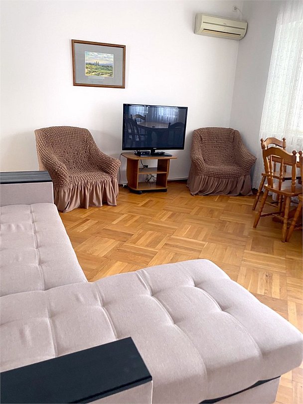 2-спальные кровати-2, диван-кровать 1, шкаф для одежды, тумбы, зеркало, кондиционер, кухня со всей необходимой бытовой техникой и посудой, телевизор, стиральная машина, фен, санузел, полотенца, wi-fiУслуги и удобства