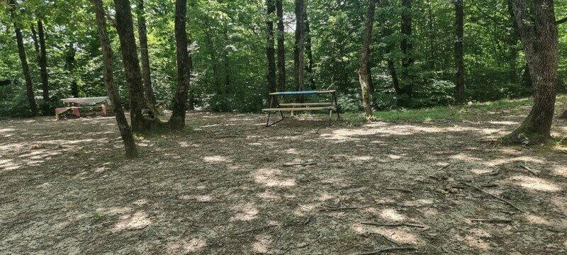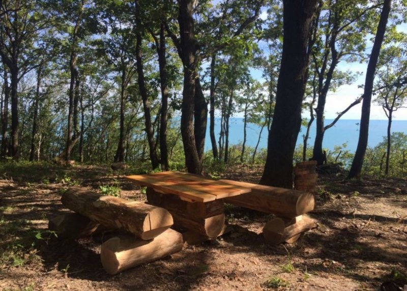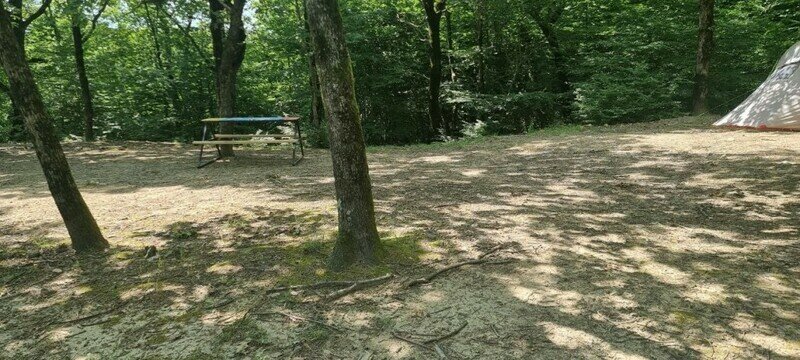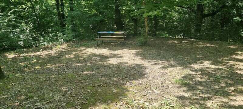 Полянка оборудована столиком с лавками, возможно разместится от 1 до 6 человек.