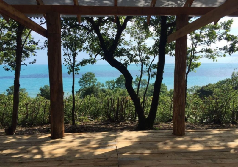 Главным плюсом данного кемпинга является своя собственная беседка, где гости могут пообщаться и познакомится с другими людьми, также гостям открывается прекрасный вид на морской пейзаж.