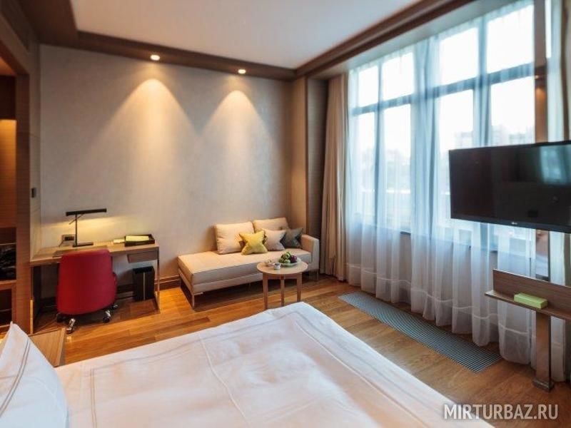 Невероятно уютный и современный номер площадью 35 кв. м. ожидает своих гостей. Панорамные окна обеспечивают номер солнечным светом, а приятный текстиль придает еще больше уюта.