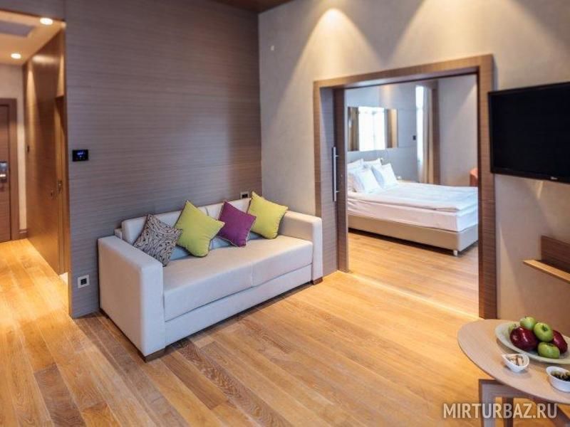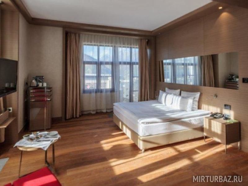 Нет ничего лучшего для компании или нескольких дружных семей, отдыха в большом и комфортном номере в два этажа. Вся мебель комфортная и выполнена из качественных материалов. Приятным сюрпризом станет терраса с бассейном на втором этаже. А вид с нее просто захватывающий - на горы!