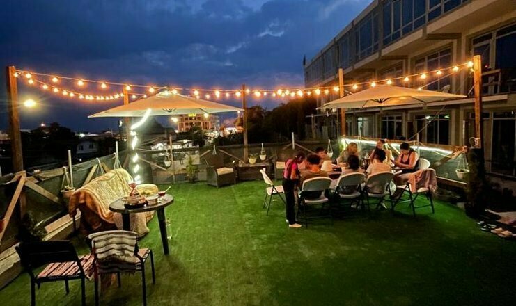 К услугам гостей уютная территория с элементами ландшафтного дизайна, общая кухня с посудой, мангал с принадлежностями для барбекю, лаунж-зона, фотозона, бесплатный Wi-Fi на территории и в номерах.