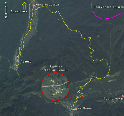 База отдыха «Горная Кубань» находится в горах восемьсот метров над уровнем моря, в поселке Мезмай. База отдыха принимает гостей круглый год. Вокруг базы природа не тронутая человеком, вид завораживающий, воздух головокружительный.