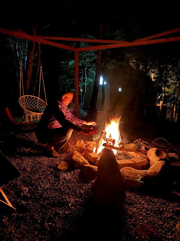 На территории глэмпинга Вы найдёте множество развлечений, таких как: баня, беседка, костровая зона, купель с горячей водой, качели, гамаки и батут для детей, а также красивые места, которые будет интересно посетить.