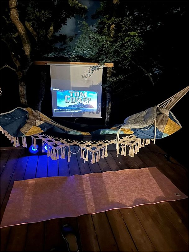 - гамаки, качели, батут;