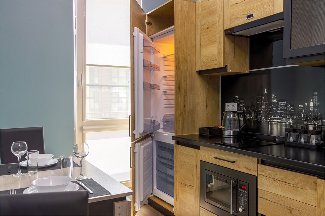 спутниковое телевидение, Wi-Fi, интернет, холодильник, кондиционер, фен, плита для приготовления пищи, микроволновая печь, ванная комната, душевая кабина, санузел, банные полотенца, двуспальная кровать, стулья, шкаф для одежды, вешалки, обеденный стол, зеркало, комод, кухня, стиральная машина, чайник, раковина, обеденная зона, отопление, вид во двор, кухонная посуда, стаканы, кухонная утварь, столовые приборы, тумба, туалетные средства, панорамные окна, телевизор с плоским экраном, номер для некурящихВ апартаментах