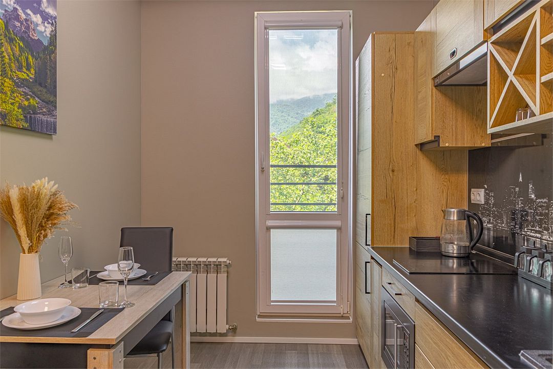 Апартаменты с кухней и видом на поселок и горыУслуги и удобства