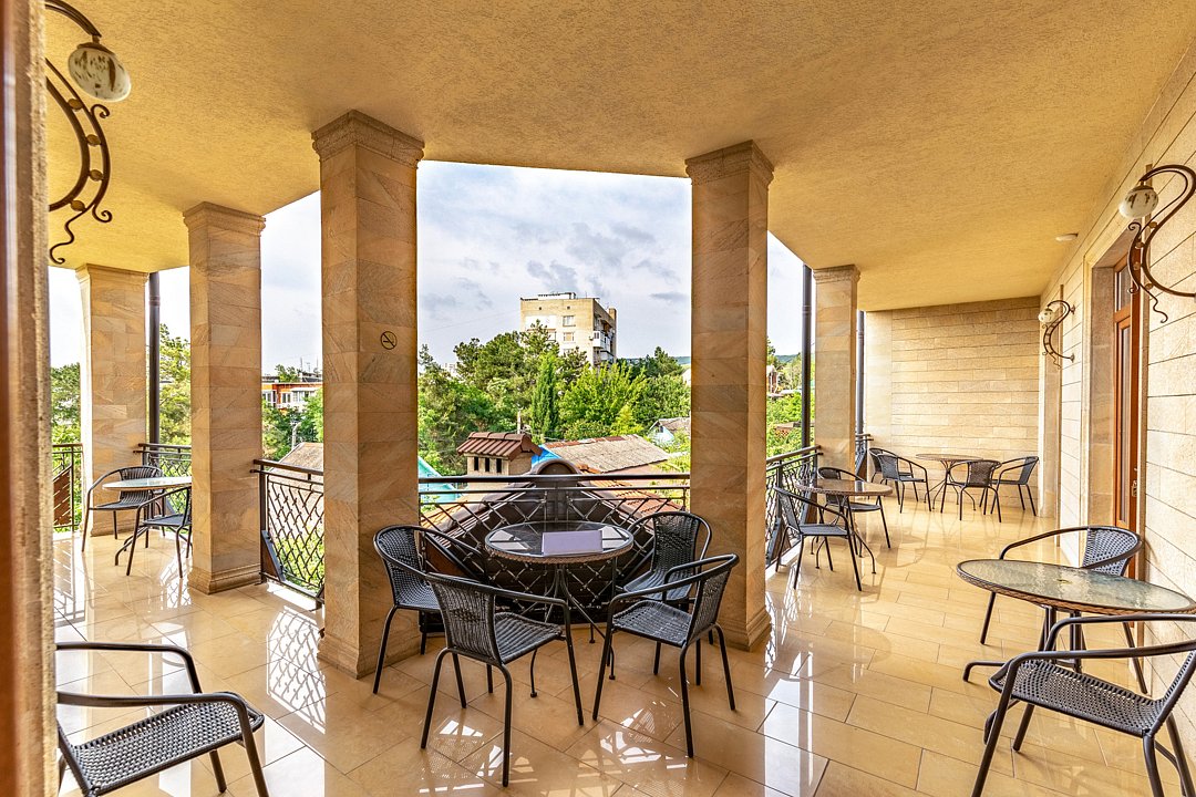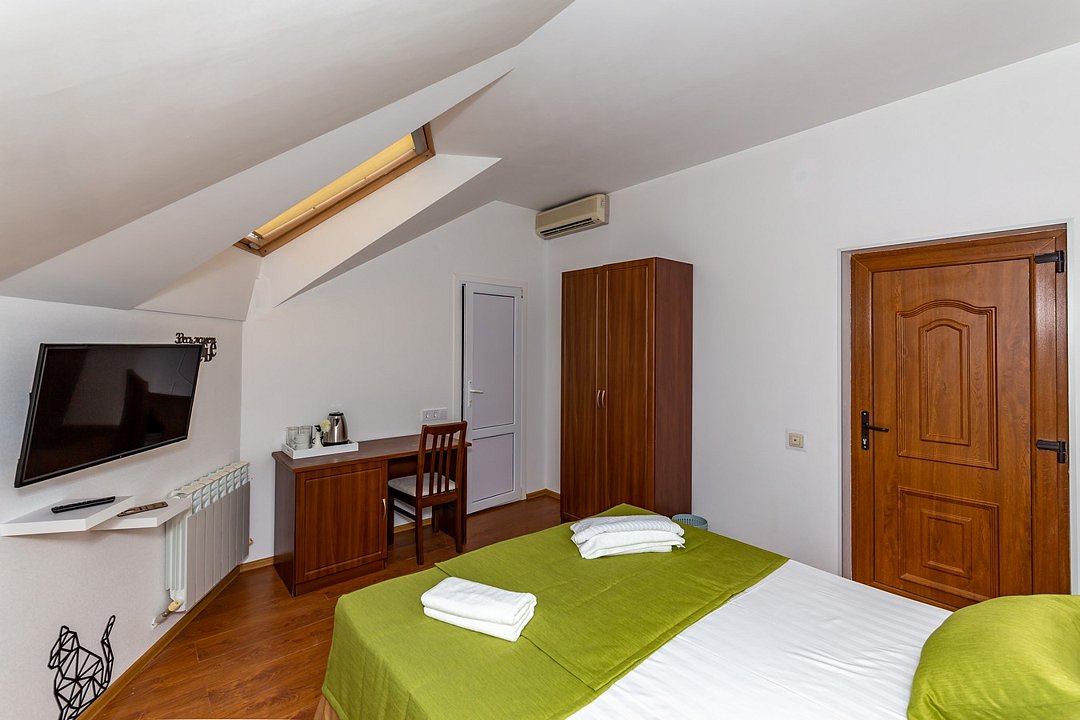 Путешествие с семьейОтличное место для организации своего отдыха.Заезжали без предварительного бронирования. Дали нормальную цену в 3000 за сутки на троих. Есть все удобства кроме парковки. Хороший персонал, близко от моря но в тихом районе. Отсутствие спутникового ТВ, есть нормальный wi-fi.