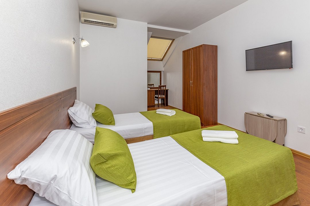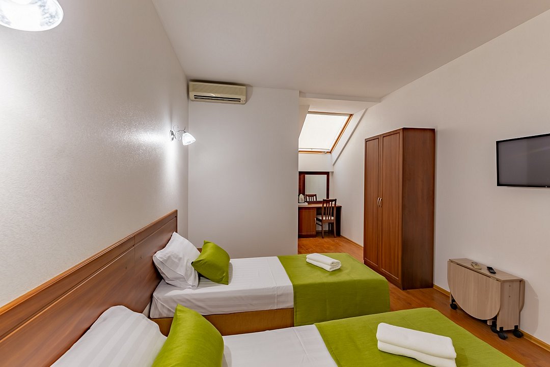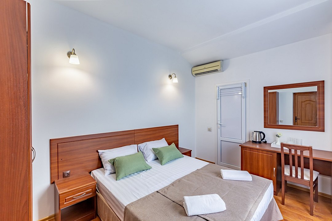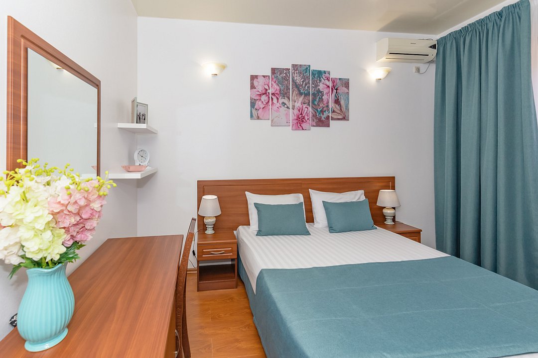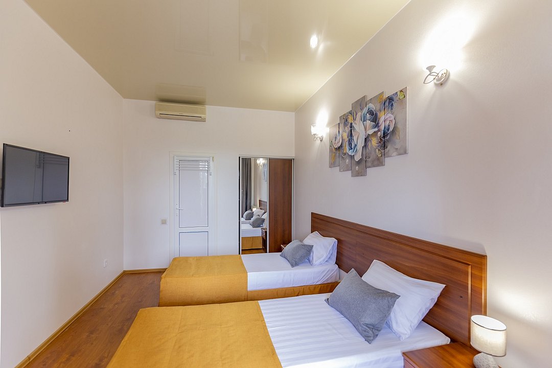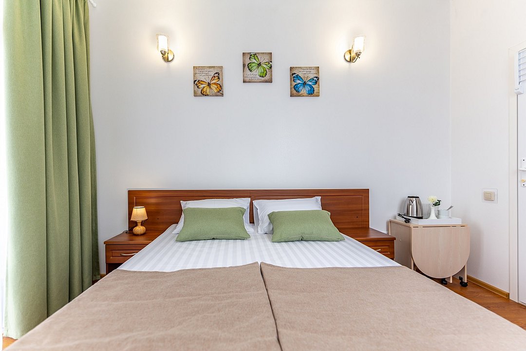 Стандарт двухместный с одной двуспальной или двумя отдельными кроватями. Уютные апартаменты площадью двадцать квадратных метров идеально подходят как для двухместного, так и для семейного размещения. Имеет уютную спальню.