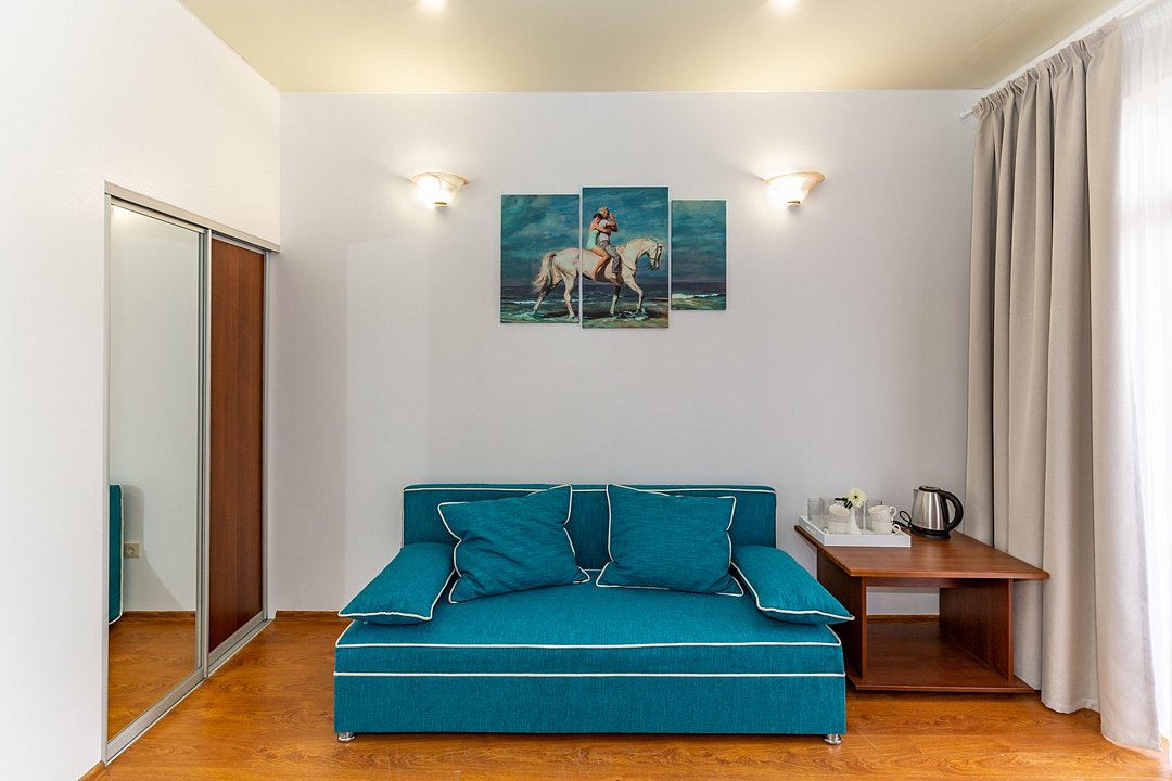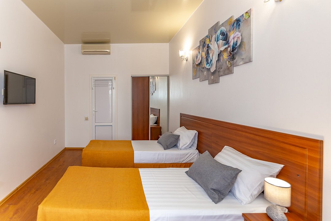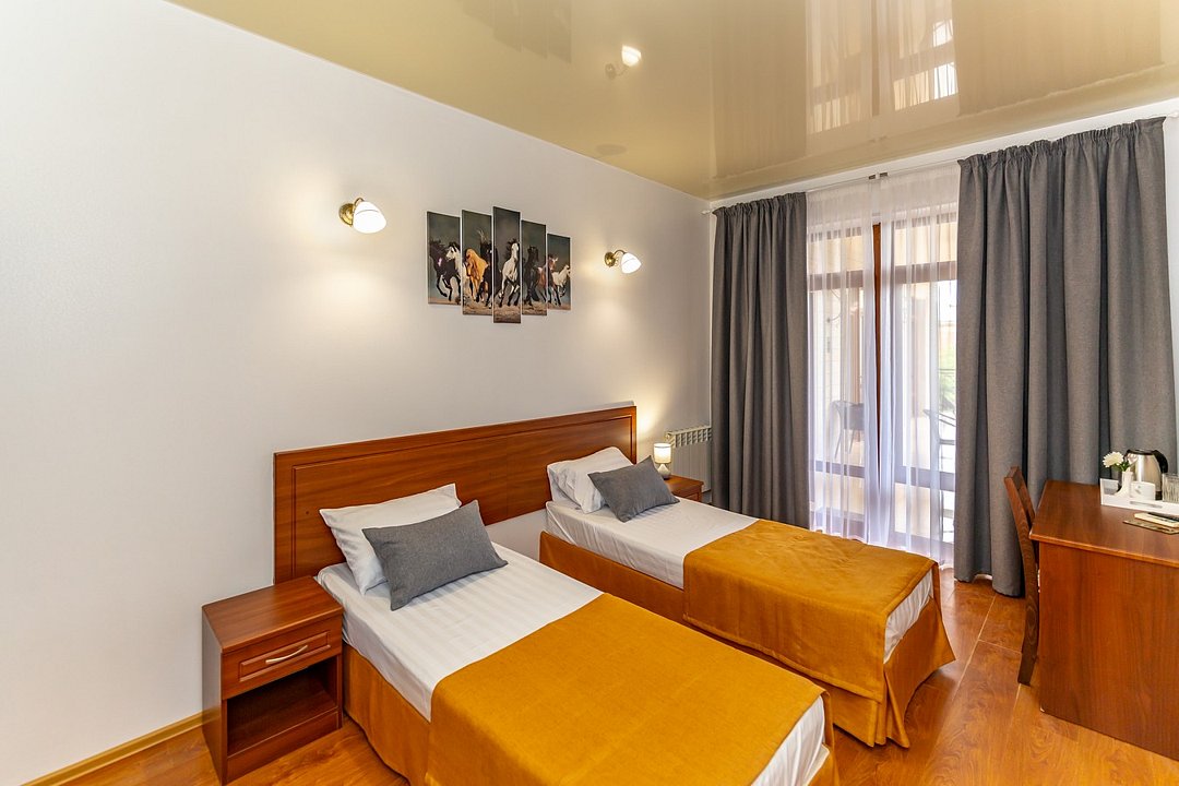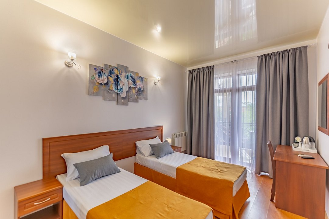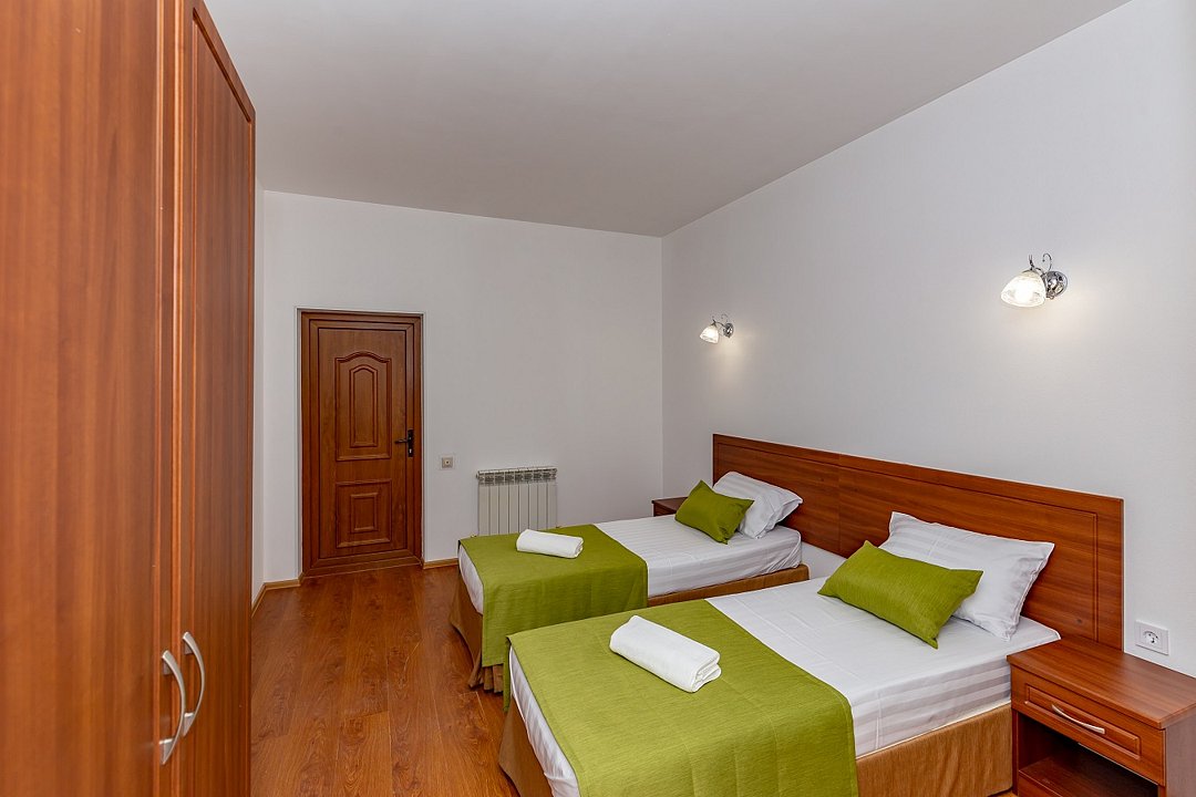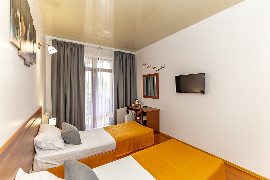 Стандарт двухместный с одной двуспальной или двумя отдельными кроватями. Уютные апартаменты площадью двадцать квадратных метров идеально подходят как для двухместного, так и для семейного размещения. Имеет уютную спальню.