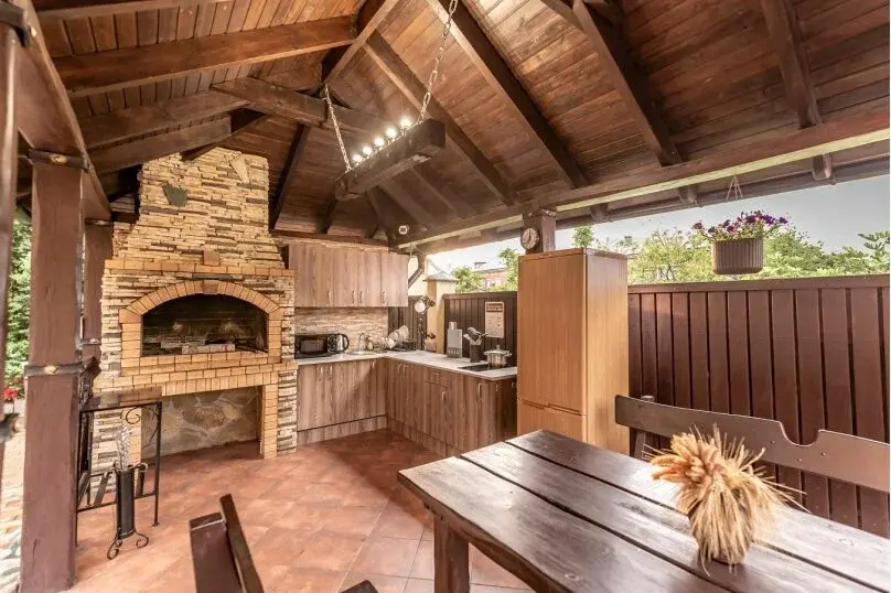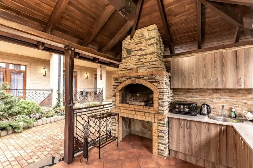 Печь-мангал, словно символ домашнего очага, приглашает гостей на уютные вечера, полные гастрономических наслаждений и дружеского общения. Все необходимое для приготовления блюд уже готово, кроме дров, углей и розжига, позволяя сосредоточиться на главном — создании незабываемой атмосферы.