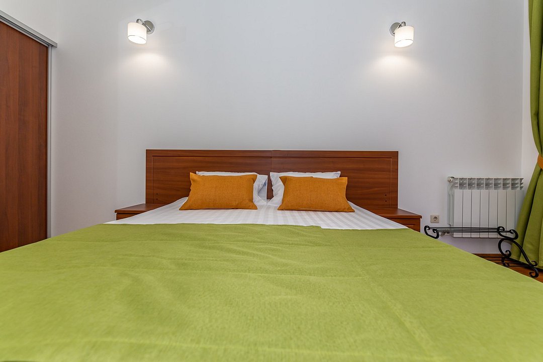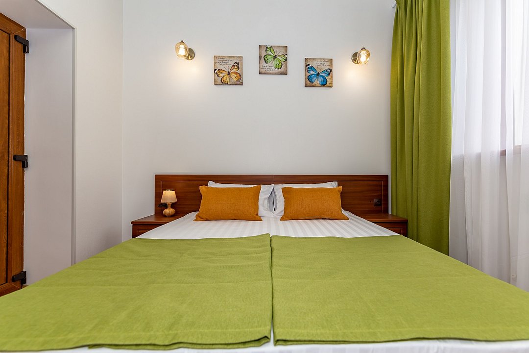 Один односпальный диван, одна двуспальная кровать или две односпальные кровати. Уютные апартаменты площадью двадцать восемь квадратных метров идеально подходят как для двухместного, так и для семейного размещения. Имеют уютную спальню.